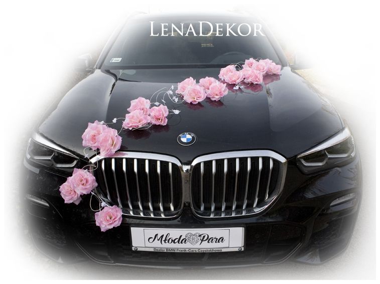 LORA dekoracja na samochód do ślubu JASNY RÓŻ